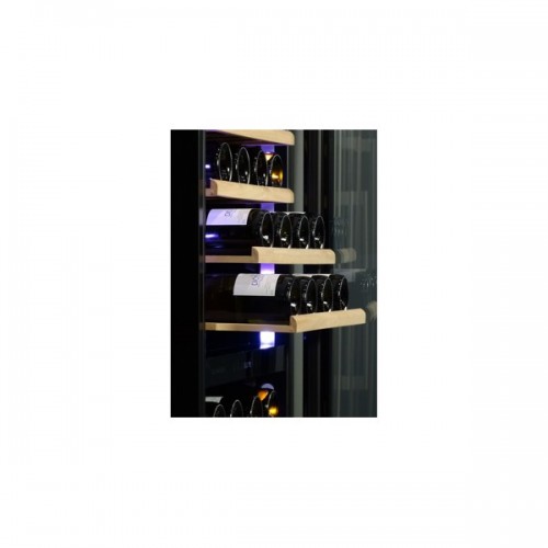Винный шкаф DX-108.330DSS Dunavox - предназначен для охлаждения, хранения при оптимальных условиях и демонстрации бутилированного вина различных сортов в барах, ресторанах, специализированных магазинах, подсобных складских помещениях, гостиницах, а также домашних условиях. Модель оснащена холодильной камерой с 2 температурными зонами, перенавешиваемой распашной дверью с магнитным уплотнением, обзорным остеклением и длинной вертикальной рукояткой, расположенной внутри камеры сенсорной панелью управления и 2 светодиодными цифровыми дисплеями. Корпус выполнен из стали с антикоррозийным покрытием черного цвета, фронт дверной рамы и рукоятка цвета нержавеющей стали, полки – из массива буковой древесины. В комплект поставки входят 13 выкатных полок с направляющими для бутылок, ключ к замку, инструкция по эксплуатации и гарантийный талон.