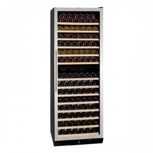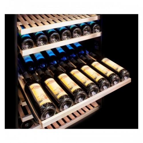 Винный шкаф DX-181.490SDSK Dunavox - предназначен для демонстрации, хранения и создания оптимальных условий для сохранения всех вкусовых свойств вина в бутылках на предприятиях общественного питания, торговли, в барах, ресторанах, специализированных магазинах, частных домах или квартирах. Модель оснащена сенсорной панелью управления и LED-подсветкой синего цвета в каждой зоне. Корпус выполнен из окрашенного металла, дверь - из бесшовной стальной рамы и тонированного стекла с защитой от ультрафиолетовых лучей, выдвижные полки - из нелакированного бука, накладная ручка двери - из нержавеющей стали.