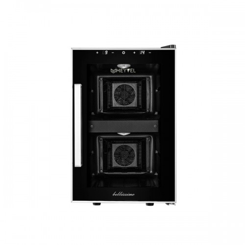 Винный шкаф MV12-BF2 easy DP Meyvel - предназначен для демонстрации, хранения и создания оптимальных условий для сохранения всех вкусовых свойств вина в бутылках на предприятиях общественного питания, торговли, в барах, ресторанах, специализированных магазинах, частных домах или квартирах. Модель оснащена электронной панелью управления, электронным термостатом и светодиодной подсветкой. Корпус выполнен из окрашенной в черный цвет стали, дверь - из нержавеющей окантовки и двойного стекла с защитой от ультрафиолетовых лучей, полки - из массива бука.