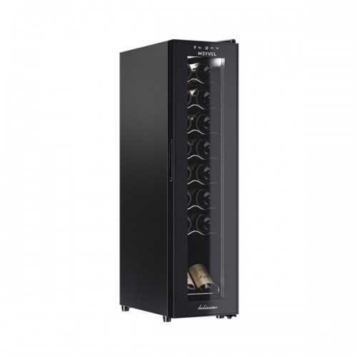 Винный шкаф MV16-CBD1 DP Meyvel - предназначен для демонстрации, хранения и создания оптимальных условий для сохранения всех вкусовых свойств вина в бутылках на предприятиях общественного питания, торговли, в барах, ресторанах, специализированных магазинах, частных домах или квартирах. Модель оснащена сенсорной панелью управления, электронным термостатом и светодиодной подсветкой белого цвета. Корпус выполнен из окрашенной в черный цвет стали, дверь - из пластиковой рамы и двойного стекла с защитой от ультрафиолетовых лучей, полки - из хромированного металла.