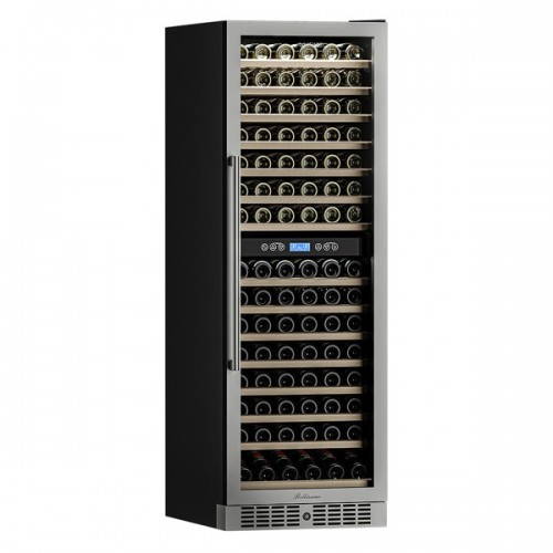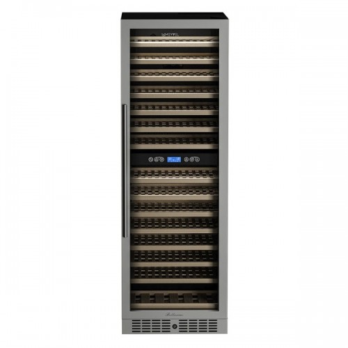 Винный шкаф MV160-KST2 Meyvel - предназначен для демонстрации, хранения и создания оптимальных условий для сохранения всех вкусовых свойств вина в бутылках на предприятиях общественного питания, торговли, в барах, ресторанах, специализированных магазинах, частных домах или квартирах. Модель оснащена сенсорной панелью управления, 2 электронными термостатами и внутренней светодиодной подсветкой. Корпус выполнен из окрашенной в черный цвет стали, дверь - из тройного стекла с УФ-фильтром, рамка двери - из бесшовной нержавеющей стали, полки - из массива бука.