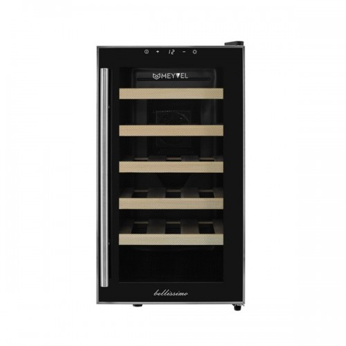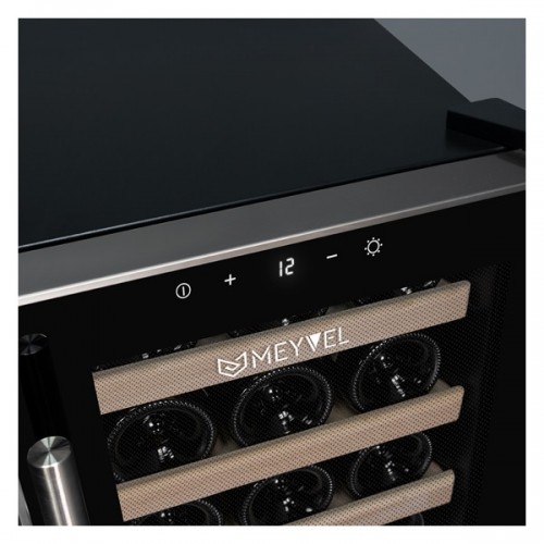 Винный шкаф MV18-BF1 easy DP Meyvel - предназначен для демонстрации, хранения и создания оптимальных условий для сохранения всех вкусовых свойств вина в бутылках на предприятиях общественного питания, торговли, в барах, ресторанах, специализированных магазинах, частных домах или квартирах. Модель оснащена электронной панелью управления, электронным термостатом и светодиодной подсветкой. Корпус выполнен из окрашенной в черный цвет стали, дверь - из стальной окантовки и двойного стекла с защитой от ультрафиолетовых лучей, ручка двери - из стали, полки - из массива бука.