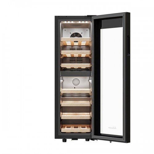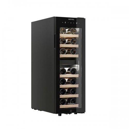 Винный шкаф MV19-KBF2 Meyvel - предназначен для демонстрации, хранения и создания оптимальных условий для сохранения всех вкусовых свойств вина в бутылках на предприятиях общественного питания, торговли, в барах, ресторанах, специализированных магазинах, частных домах или квартирах. Модель оснащена сенсорной панелью управления, электронным термостатом и светодиодной подсветкой. Корпус выполнен из окрашенной в черный цвет стали, дверь - из пластиковой рамы и двойного стекла с УФ защитой, полки - из массива бука.