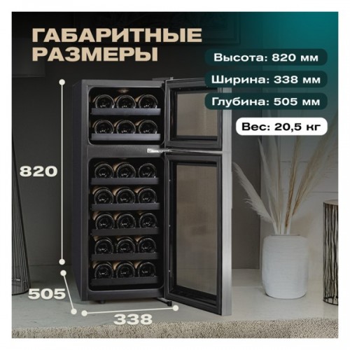 Двухзонный220 В60 л7...18 °CСтальR600AНет2ПрозрачнаяДинамический7 шт21 бутТермоэлектрическое510 мм340 мм820 мм20.5 кгКитай