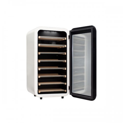 Винный шкаф MV22-KWF1 Meyvel - предназначен для демонстрации, хранения и создания оптимальных условий для сохранения всех вкусовых свойств вина в бутылках на предприятиях общественного питания, торговли, в барах, ресторанах, специализированных магазинах, частных домах или квартирах. Модель оснащена сенсорной панелью управления, электронным термостатом и белой светодиодной подсветкой. Корпус выполнен из окрашенной в белый цвет стали, дверь - из тройного стекла с защитой от ультрафиолетовых лучей, полки - из массива бука.