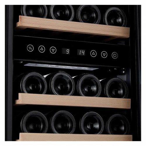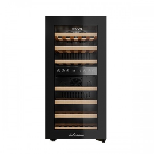 Винный шкаф MV33-KBF2 Meyvel - предназначен для демонстрации, хранения и создания оптимальных условий для сохранения всех вкусовых свойств вина в бутылках на предприятиях общественного питания, торговли, в барах, ресторанах, специализированных магазинах, частных домах или квартирах. Модель оснащена сенсорной панелью управления, электронным термостатом и светодиодной подсветкой синего цвета в каждой зоне. Корпус выполнен из окрашенной в черный цвет стали, дверь - из пластиковой рамы и тонированного стекла с защитой от ультрафиолетовых лучей, полки - из массива бука.