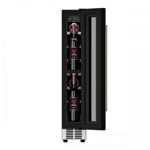 Винный шкаф MV9-KWT1 Meyvel - предназначен для демонстрации, хранения и создания оптимальных условий для сохранения всех вкусовых свойств вина в бутылках на предприятиях общественного питания, торговли, в барах, ресторанах, специализированных магазинах, частных домах или квартирах. Модель оснащена сенсорной панелью управления, электронным термостатом и внутренней светодиодной подсветкой. Корпус выполнен из окрашенной в черный цвет стали, дверь - из тройного стекла с УФ защитой с белой рамкой, полки - из массива бука. В комплект поставки входят петли и набор запасных логотипов для перенавешивания двери.