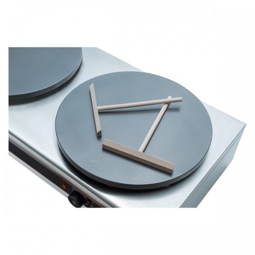 Блинница CP-CM400D Crazy Pan - используется на предприятиях общественного питания и торговли. Модель оснащена терморегулятором. Модель оснащена 2 Т-образными лопатками, 2 ТЭНами и поддоном. Корпус выполнен из нержавеющей стали, жарочных поверхности - из чугуна с антипригарным покрытием.