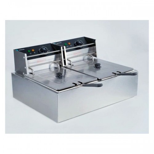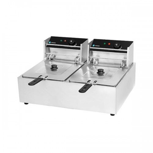 Фритюрница HKN-FR66L Hurakan - предназначена для обжаривания продуктов, таких как картофель, мясо, рыба, овощи и фрукты в кляре, в разогретом до определенной температуры растительном или животном масле. Оснащена электромеханическим управлением, емкости для масла легко снимаются, размер каждой корзины: 180x210x100 мм