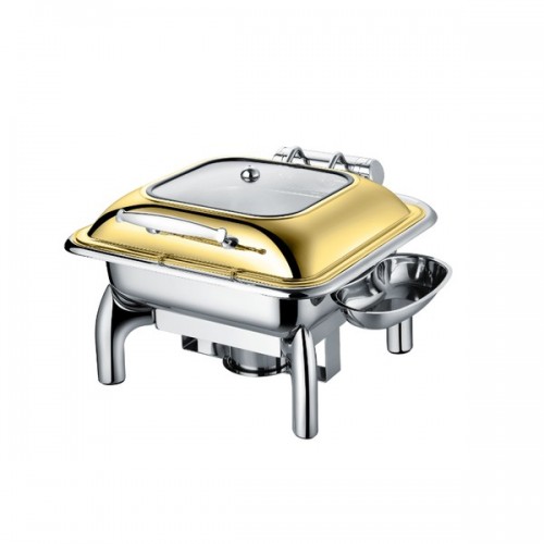 • Чафинг-диш CP-CHD017T titan Crazy Pan - предназначен для постоянного подогрева первых и вторых блюд и поддержания их оптимальной температуры на предприятиях общественного питания и торговли. Модель оснащена откидной крышкой с ручкой. Корпус выполнен из высококачественной нержавеющей стали марки 201 с глянцевой серебристой поверхностью, крышка с глянцевым покрытием оттенка титан. В комплект поставки входят нагревательный блок и гастроемкость формата GN2/3.