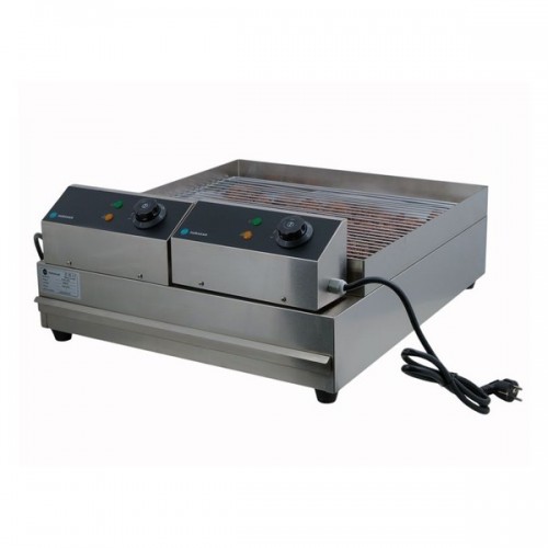 Гриль лавовый HKN-140D Hurakan - предназначен для приготовления различных блюд: стейков, шашлыка, овощей и многих других. Процесс жарки происходит без применения масла. Использование вулканической лавы позволяет равномерно распределять жар по продукту; лавовый камень впитывать лишнюю жидкость, а также исключает появление неприятных запахов в процессе готовки. Блюда, приготовленные на гриле с лавовым камнем, по своему виду и вкусовым качествам ничем не уступают блюдам, которые готовятся на открытом огне. Используется на предприятиях общественного питания, как самостоятельно, так и в составе технологических линий.